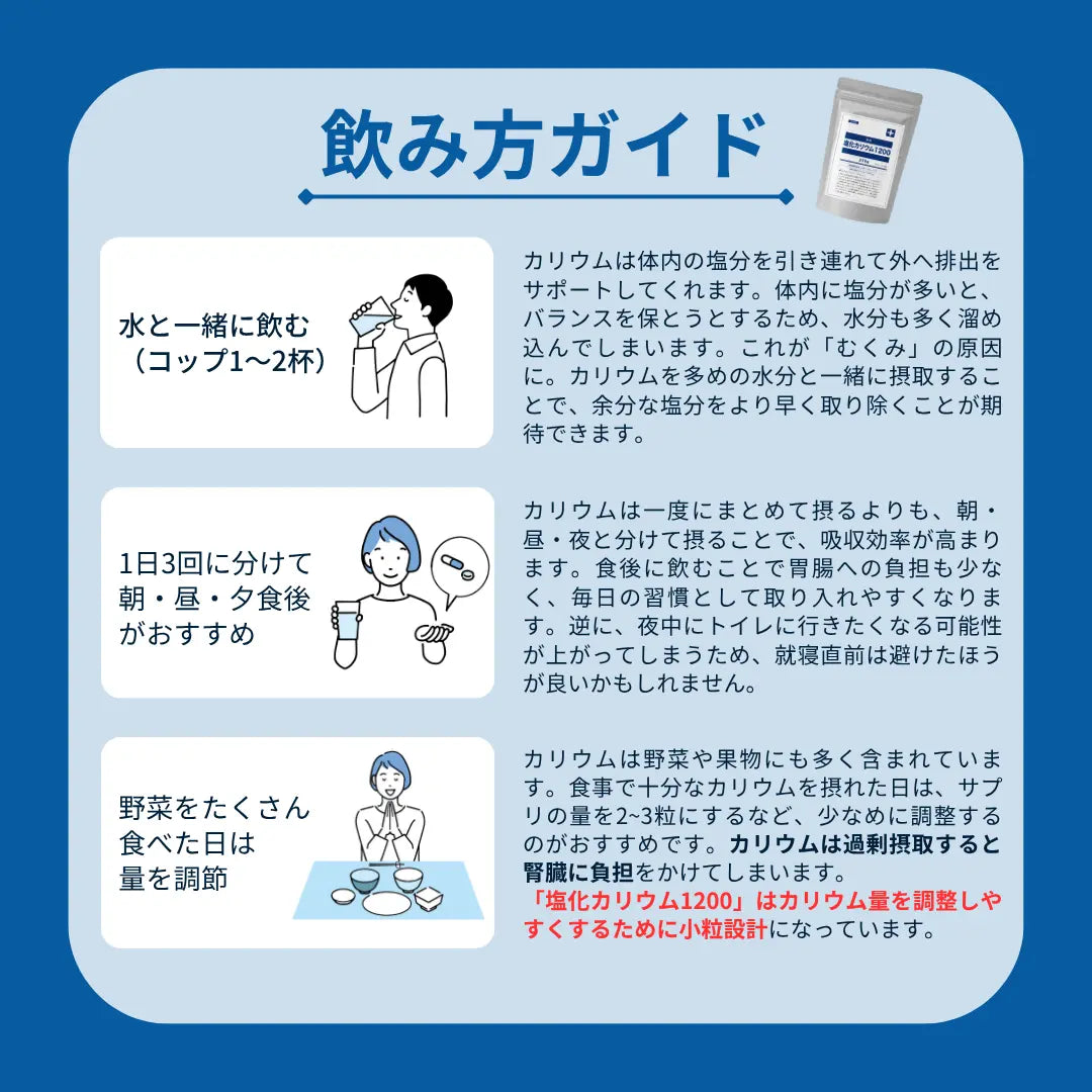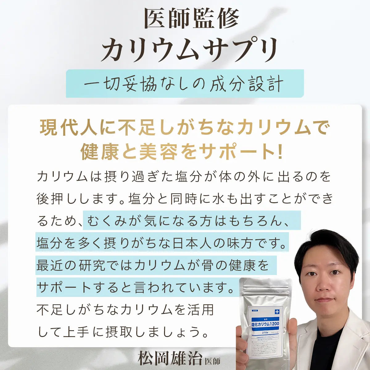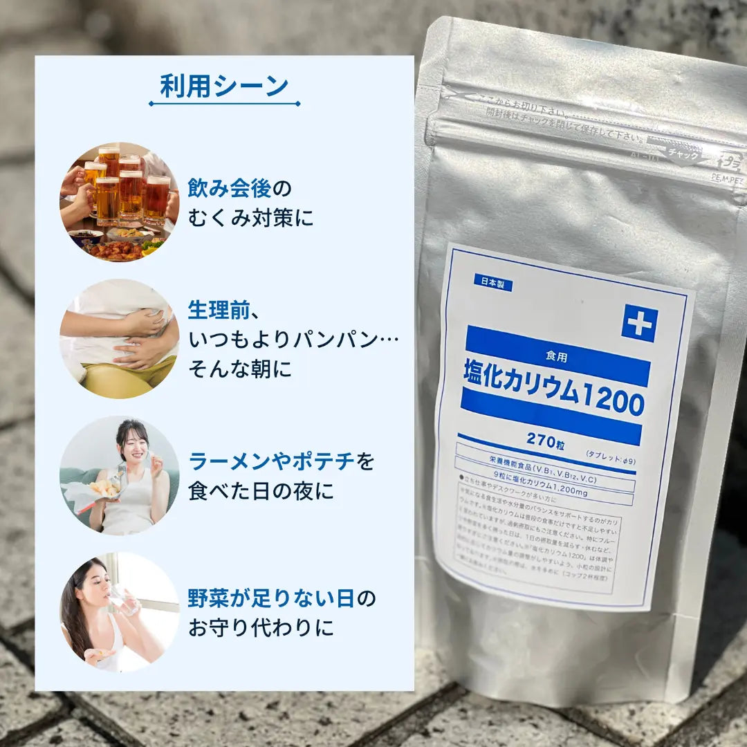 ・【内容量】89.4g (320mg×270粒) ※1日9粒 (カリウム1,200mg) 30日分 ※1日3粒 (カリウム400mg) 90日分